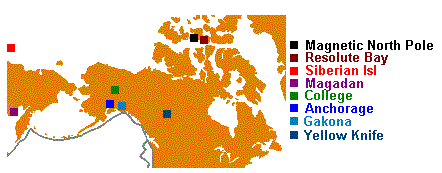 Magnetometer has stations at 5 points around the Magnetic North Pole.