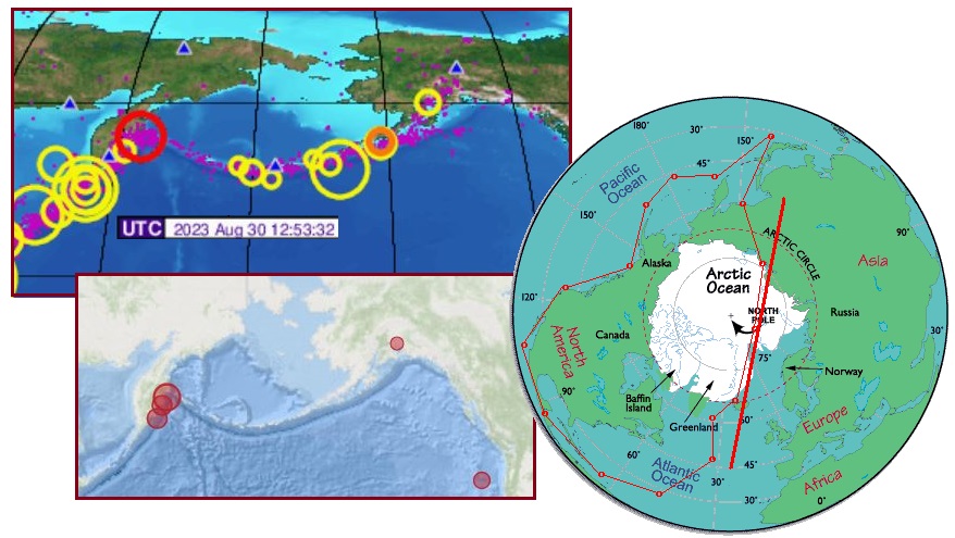 Затем мы получили сюрприз в северной части Тихого океана. Экстремальное сжатие, оказываемое на Тихий океан жесткостью Северо-Американской плиты, которая не подавала признаков сгибания или разрыва, внезапно лопнуло. У Северо-Американской плиты есть длинный крюк, спускающийся из Арктики через Дальний Восток, чтобы коснуться Японии. По мнению Зетов, это твердая порода, не склонная к разрушению, но 30 августа что-то над или сбоку от крюка из твердой породы разорвалось! До этого напряжение, вызванное сжатием северной части Тихого океана, проявилось в виде напряжения на Дальнем Востоке и в Британской Колумбии, расположенных боком друг к другу в северной части Тихого океана.
