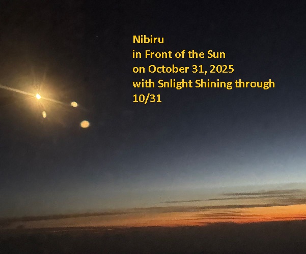 As predicted, Nibiru has started to move in front of the Sun, thus allowing sunlight to streak through its vast Petrol and Debris ridden Dust Cloud. The Second Sun was sunlight glinting off the Dust Cloud but this is now illumination. On October 31 Nibiru is being shown in a new way, the start of this new phase.
