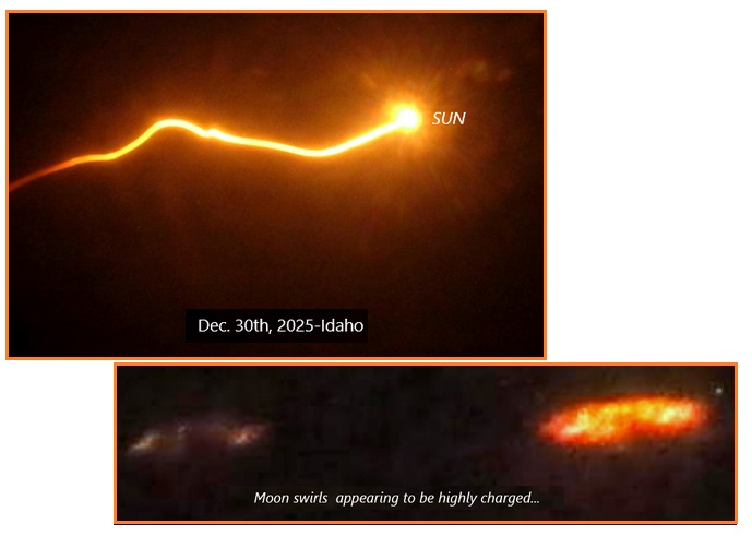 Приветствую тебя, эмиссар. Сегодня, снимая молнии, бьющие от Солнца к хвосту обломков Нибиру, я решил повернуть камеру влево и посмотреть, как далеко я смогу отъехать, чтобы заснять молнии, бьющие от Солнца и достигающие хвоста обломков Нибиру. Мне удалось отъехать от Солнца на целых 90 градусов, при этом Солнце находилось у меня за правым плечом, и я заснял момент, когда молния достигла цели. Моё любопытство так и подмывает задать Зетам вопрос: на какое расстояние в милях распространяются эти молнии, чтобы мы могли понять, какое расстояние они преодолевают? Мои снимки — это не непрерывная молния, а последовательность кадров, сделанных, когда я двигался влево. Попадают ли молнии в случайные части 15-миллионного хвоста из обломков двойной спирали, который находится в пределах 5 миллионов миль от самой Нибиру? Кроме того, на каком расстоянии друг от друга будут находиться Нибиру и Земля, когда они начнут соприкасаться? [и из другого] Громы богов 20 июня 2010 г. http://www.zetatalk.com/russia/issue190.htm В выпуске 188 мы рассказали о многочисленных упоминаниях в фольклоре и пророчествах трубных звуков, которые, по словам Зет, были вызваны мощными раскатами грома из-за межпланетных молний, проходящих от Земли к Планете X. Эти раскаты грома были настолько громкими, что вызывали временную глухоту, «внезапную тишину». В петроглифах есть и другие свидетельства того, что межпланетные молнии действительно существуют. [и из другого] Трубный глас 6 июня 2010 г.Кольбрин: За днями затишья последовало время, когда с небес доносился трубный глас и пронзительные крики, и люди стали подобны испуганным зверям без палача. … В небесах раздался оглушительный грохот, и вспыхнули яркие молнии. Затем раздался звук, подобный звуку десяти тысяч труб… Вся земля задрожала, и горы растаяли. Само небо взревело, как десять тысяч львов в агонии. Откровение 8:6-7 И семь ангелов, у которых было семь труб, приготовились трубить. Прозвучал голос первого ангела, и последовали град и огонь, смешанные с кровью, и пали они на землю, и сгорела треть деревьев, и вся трава зелёная сгорела.